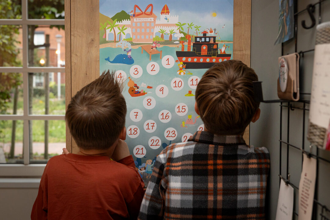Wat een feest! Sinterklaas is onderweg naar ons land. In de themabox zit een aftelkalender die je op een leuke plek in je huis kunt hangen. De eerste sticker mag geplakt worden op maandag 10 november, de dag dat ook het Sinterklaasjournaal begint op tv. De eerste sticker wordt geplakt op nummer 1 en tijdens het plakken van de stickers maak je met Sinterklaas en zijn Pieten de overtocht van Spanje naar Nederland. Kies dagelijks samen een leuk moment uit om de sticker op te plakken.
